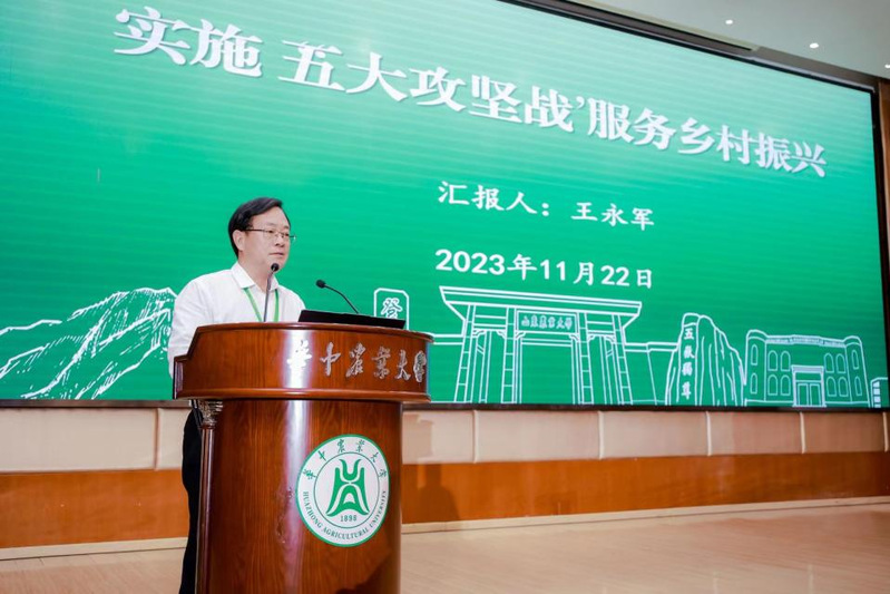11月22日至25日,高等学校新农村发展研究院第五届乡村振兴论坛在华中农业大学举行。来自全国40所高校的150余名领导、专家和企业代表参会,交流高等学校新农村发展研究院建设成效,探讨高校如何科技赋能,更好助力乡村振兴。我校社会合作与成果转化处王永军处长在会上做了“实施‘五大攻坚战’服务乡村振兴”的交流报告。
